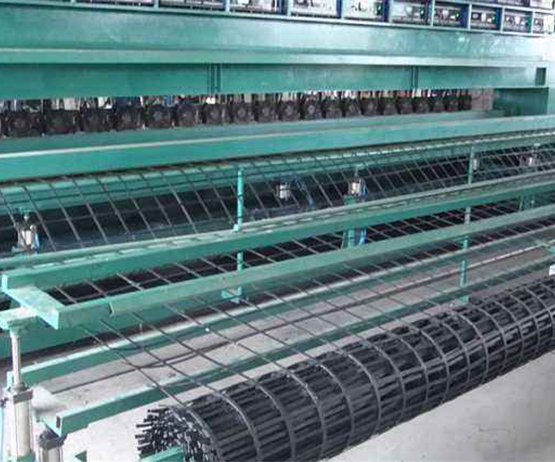 鋼塑土工格柵以高強(qiáng)鋼絲(或其他纖維),經(jīng)特殊處理,與聚乙烯(PE),并添加其他助劑,通過擠出使之成為復(fù)合型高強(qiáng)抗拉條帶,且表面有粗糙壓紋,則為高強(qiáng)加筋土工帶。由此單帶,經(jīng)縱、橫按一定間距編制或夾合排列,采用特殊強(qiáng)化粘接的熔焊技術(shù)焊接其交接點(diǎn)而成型,則為加筋土工格柵。